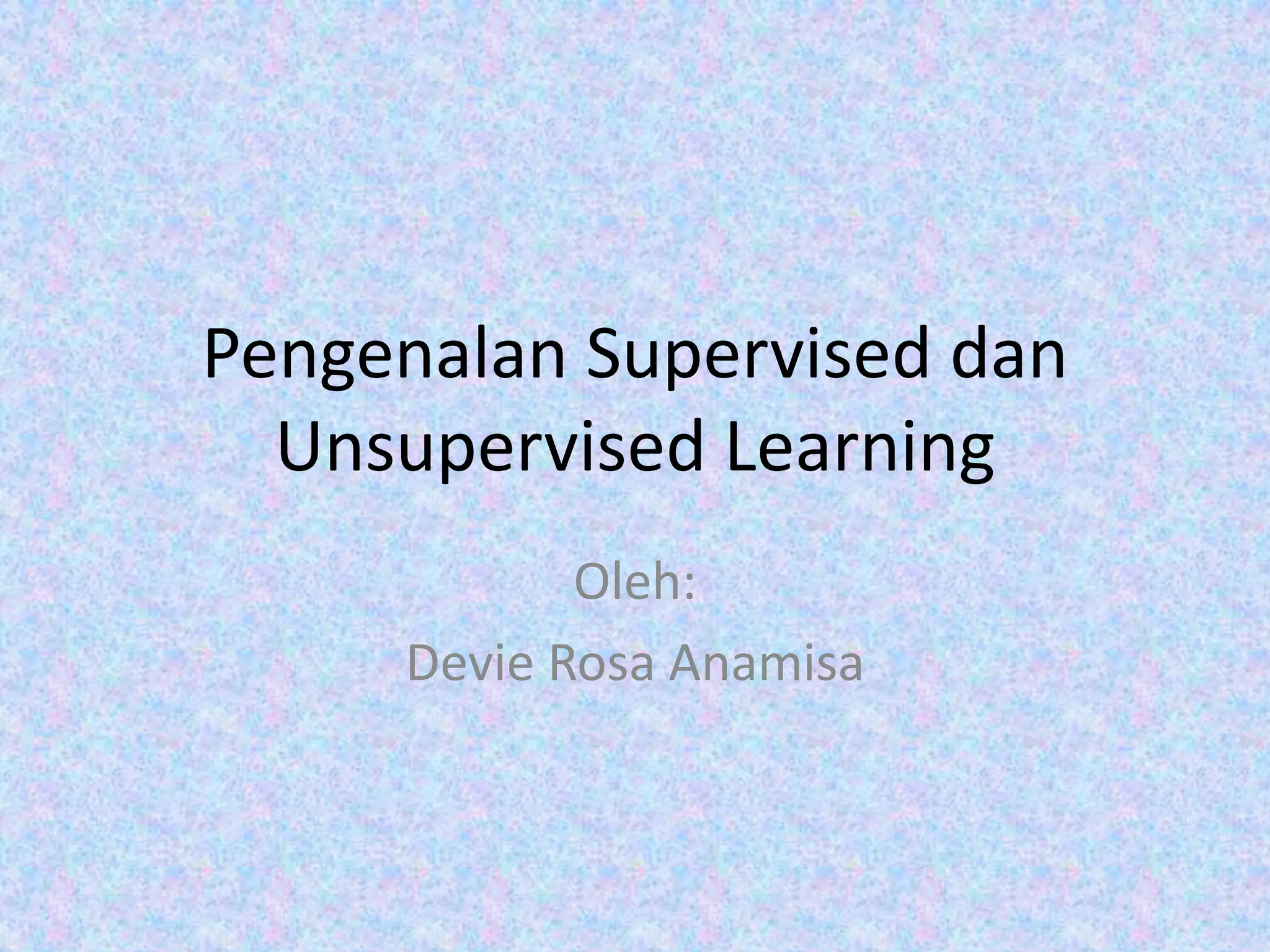 Dokumen ini membahas perbedaan antara supervised dan unsupervised learning dalam konteks pengenalan pola, data mining, dan machine learning. Supervised learning melibatkan pelatihan dengan data berlabel, sementara unsupervised learning melibatkan pengelompokan data tanpa label. Penjelasan ini juga mencakup teknik klasifikasi, regresi, dan transformasi data untuk meningkatkan akurasi analisis.