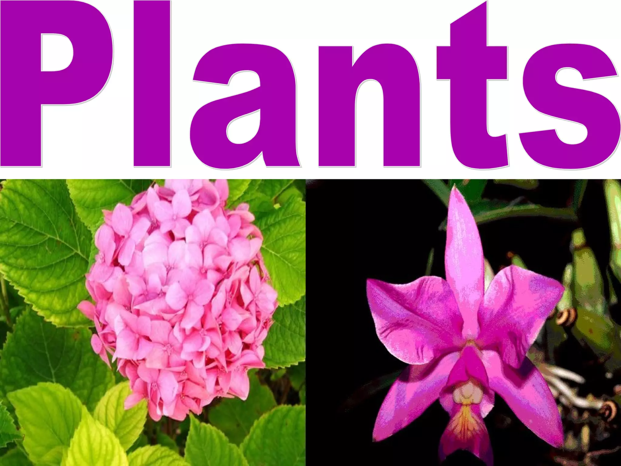Plants have roots, stems, and leaves and make their own food using sunlight, water, carbon dioxide, and soil nutrients. They cannot move. Most plants reproduce using seeds or spores. Plants take in water and minerals through their roots and carbon dioxide through their leaves. In their leaves, plants perform photosynthesis using chlorophyll to make food from sunlight, which is then transported through the plant.