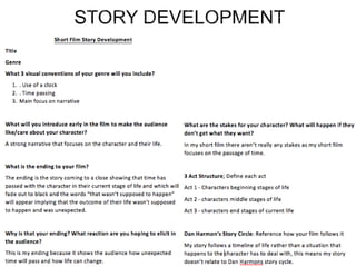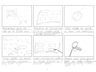 The document provides planning details for a short film about the progression of time shown through stop-motion animation of a photo album. It includes information on visual planning, organizational planning such as casting, locations and schedules, and sound planning using royalty-free audio sources. Storyboards, shot lists, risk assessments, and other pre-production documents are referenced or included.