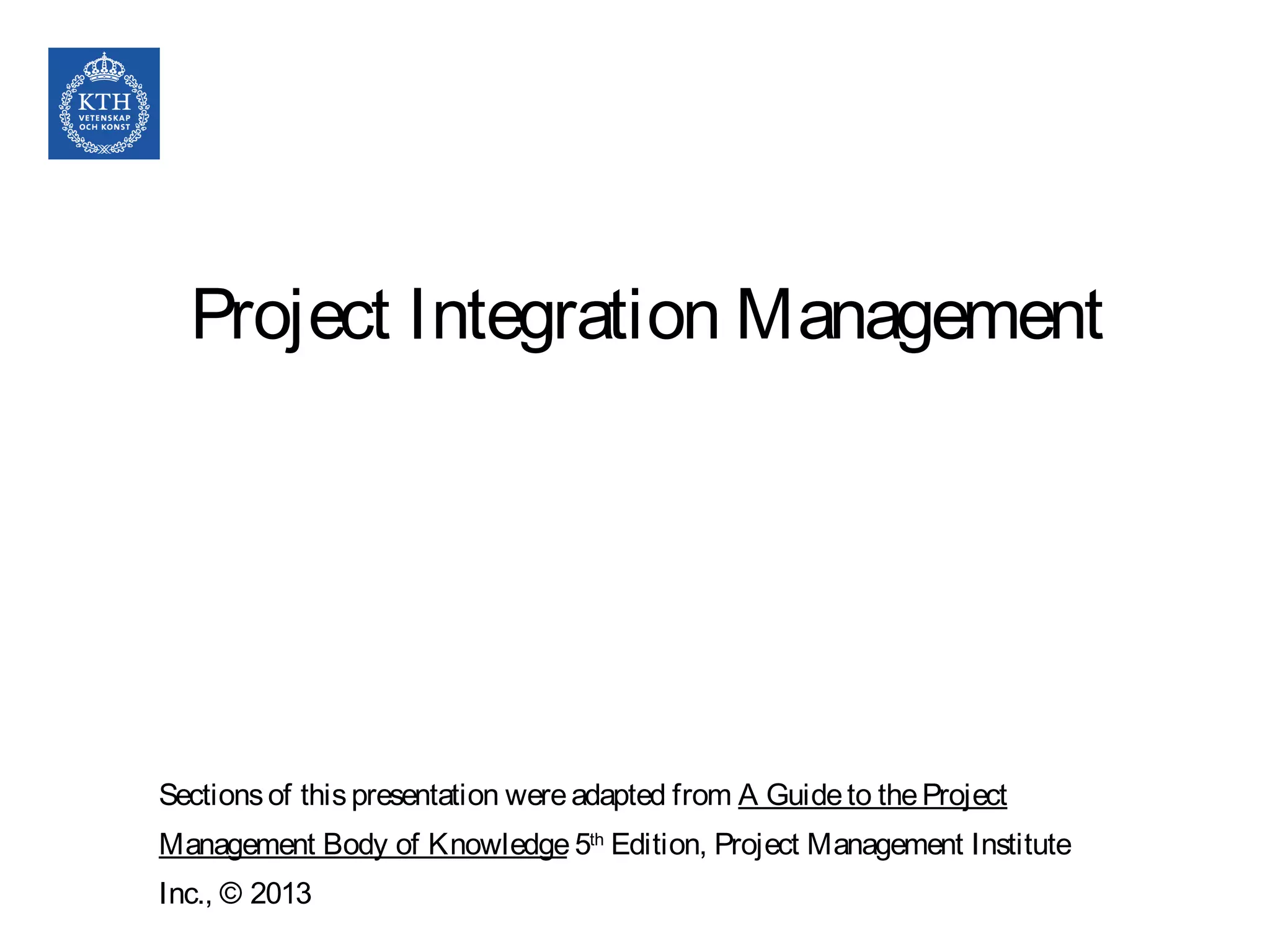 The document discusses project integration management. It describes the seven key integration processes: develop project charter, develop project management plan, direct and manage project execution, monitor and control project work, perform integrated change control, close project or phase. It emphasizes that the project manager is responsible for coordinating all elements of a project and ensuring they are properly managed through these integration processes.