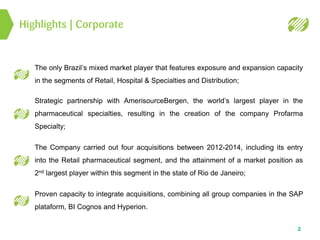 This document provides an earnings release and financial highlights for Profarma Group for the 4th quarter and full year of 2015. Key points include: