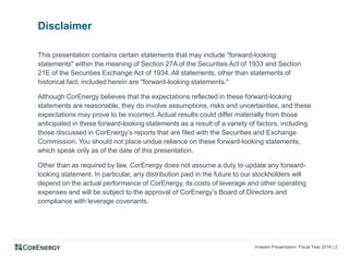 - The presentation reviewed CorEnergy's asset portfolio and tenants, capital structure, recent financing activities, and outlook for 2017 including a focus on acquisitions of $50-250 million and continued stable dividend payments.
