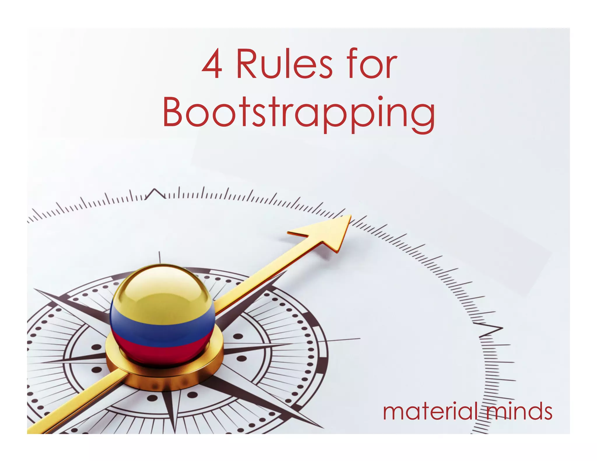 The document outlines four essential rules for bootstrapping a business: identify a budget that is waiting to be spent, do something radically different, engage customers from day one, and secure customer payments early. It emphasizes the need for recognized problems with designated problem owners and highlights the importance of quality, cost, and speed as competitive dimensions. The document also suggests using consulting and services as methods to generate early revenue and stresses the significance of starting sales activities as soon as possible.