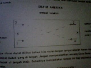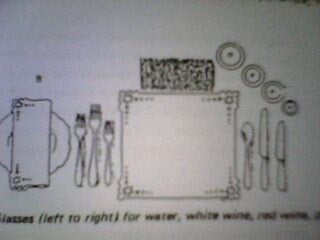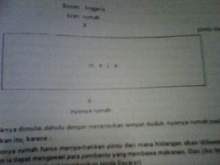 The document provides a table manner menu for Cara Restaurant. The menu includes shrimp cocktail, chicken cream soup, fish dish, chicken steak, vegetable and baked potato, mixed green salad, fresh fruits, and choice of coffee or tea. Meja Makan and Terima Kasih are listed at the bottom.