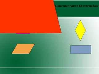 Параллелограмм Эсрэг талууд нь хос хосоороо параллель 4 өнцөгтийг параллелограмм гэнэ. - 5.