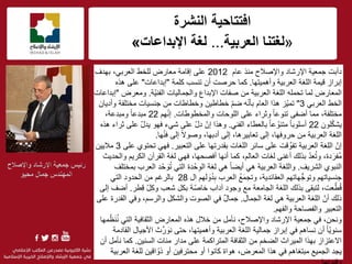 تتناول الوثيقة افتتاح معرض بعنوان "إبداعات الخط العربي 3" الذي أقامته جمعية الإرشاد والإصلاح في بيروت، وذلك بهدف إبراز جمال اللغة العربية وثراء فن الخط. يتضمن المعرض 45 لوحة لفنانين من جنسيات مختلفة، ويستمر حتى 31 آذار 2018، حيث يشارك فيه عدد من الشخصيات العامة والإعلاميين. أشار المتحدثون إلى أهمية الحفاظ على اللغة العربية من خلال الأنشطة الثقافية مثل هذا المعرض.