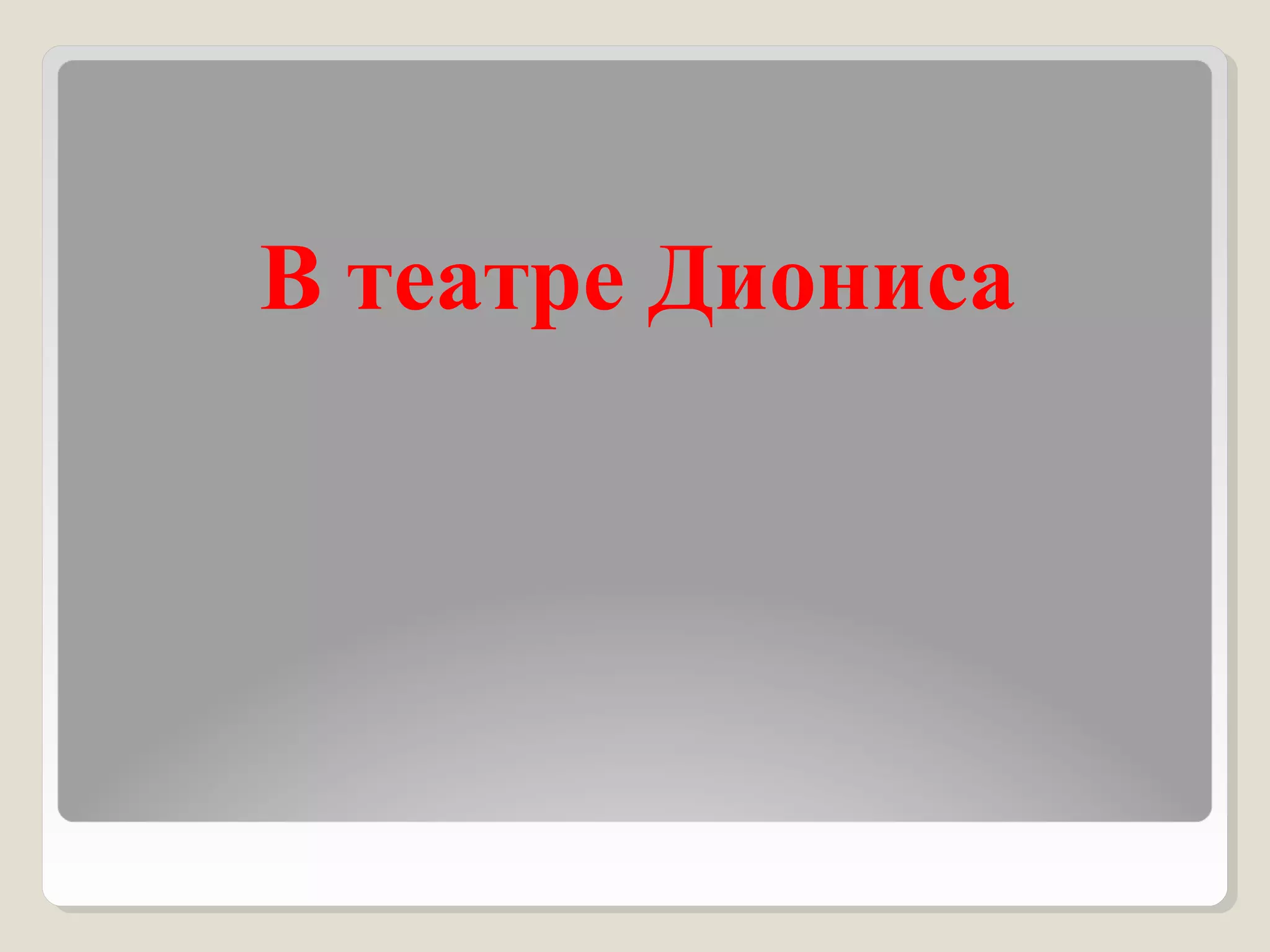 Театр Диониса в Греции был местом для зрелищ, связанным с праздниками в честь Диониса. Он состоял из трех частей: места для зрителей, орхестры и скене, и в нем выступали только мужчины, представляя трагедии и комедии, такие как 'Антигона' Софокла и 'Птицы' Аристофана. В документе также указано домашнее задание, связанное с чтением и пересказом материала.