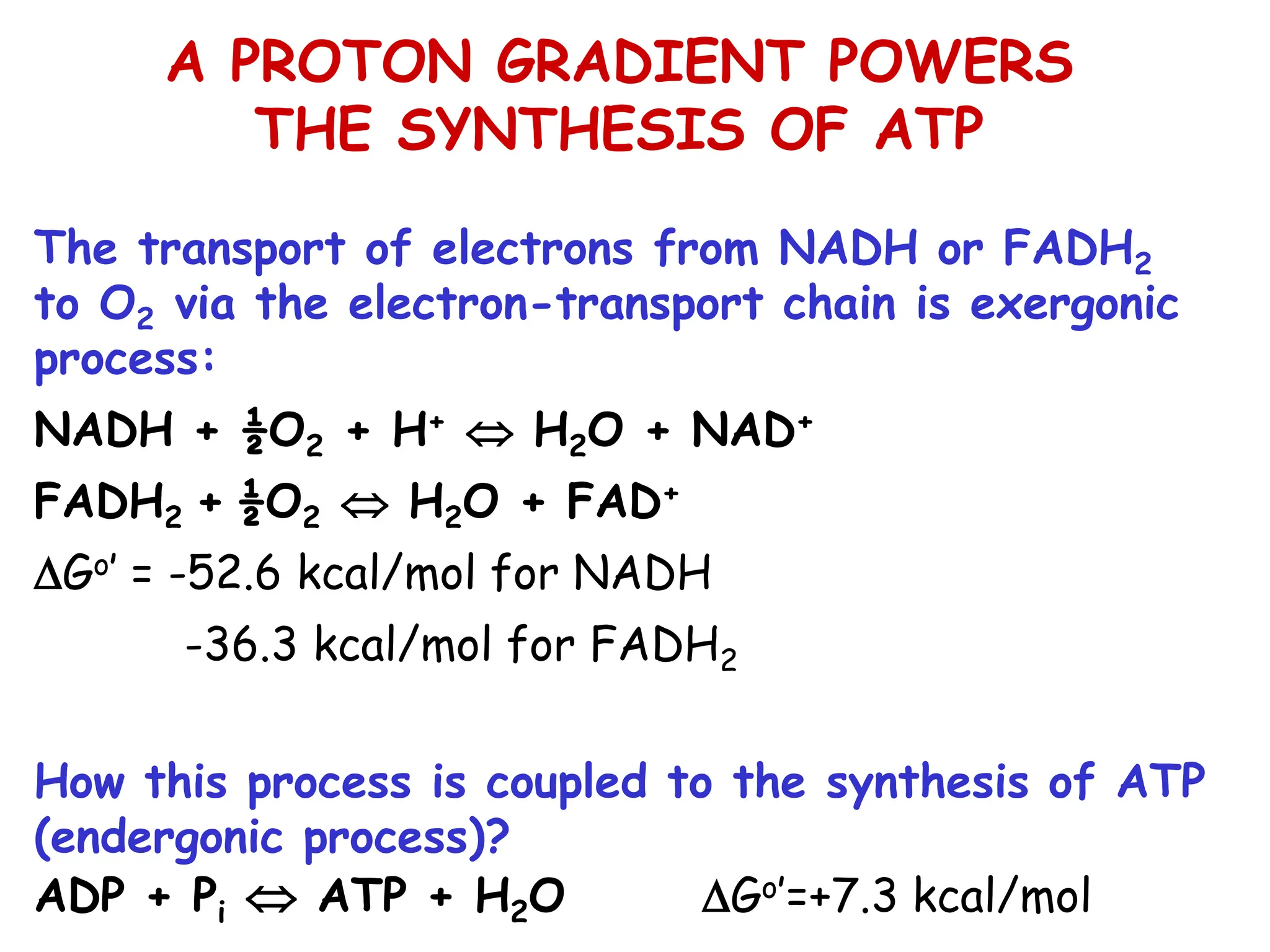 The document discusses the chemiosmotic theory of oxidative phosphorylation, which explains how a proton gradient created during electron transport is utilized for ATP synthesis in mitochondria. Key components include the electron transport chain, ATP synthase, and various shuttles that transport electrons and metabolites across the mitochondrial membrane. The process is tightly regulated by the levels of ADP, ATP, and uncoupling proteins that can generate heat instead of ATP in certain conditions.