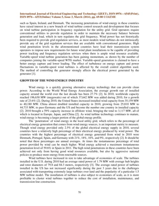 This document discusses pitch angle control of variable speed wind turbines. It begins with an introduction to wind turbines and their components. The main types are horizontal axis and vertical axis turbines. Variable speed turbines allow control of power output through adjustment of the pitch angle. At low wind speeds, the pitch angle is high to accelerate the turbine. At rated wind speed, the pitch angle is controlled by a PI controller to regulate power output. The document presents the modeling of a pitch controlled wind turbine system in MATLAB/Simulink, including a wind turbine block, pitch controller, and actuator dynamics. Pitch control is important for optimizing power capture and limiting loads at high wind speeds.