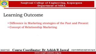 The document discusses a paradigm shift in marketing from a transaction-oriented approach to a relationship-based focus, emphasizing the importance of building long-term customer relationships for success. It covers fundamental concepts like customer value, knowledge management, and the integration of technology in marketing strategies. Additionally, it outlines various relationship marketing programs and their advantages, along with the pivotal role of customer interaction in enhancing marketing effectiveness.