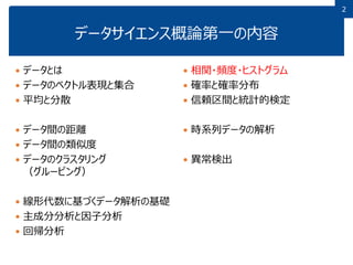 2 データサイエンス概論第一の内容 データとは データのベクトル表現と集合