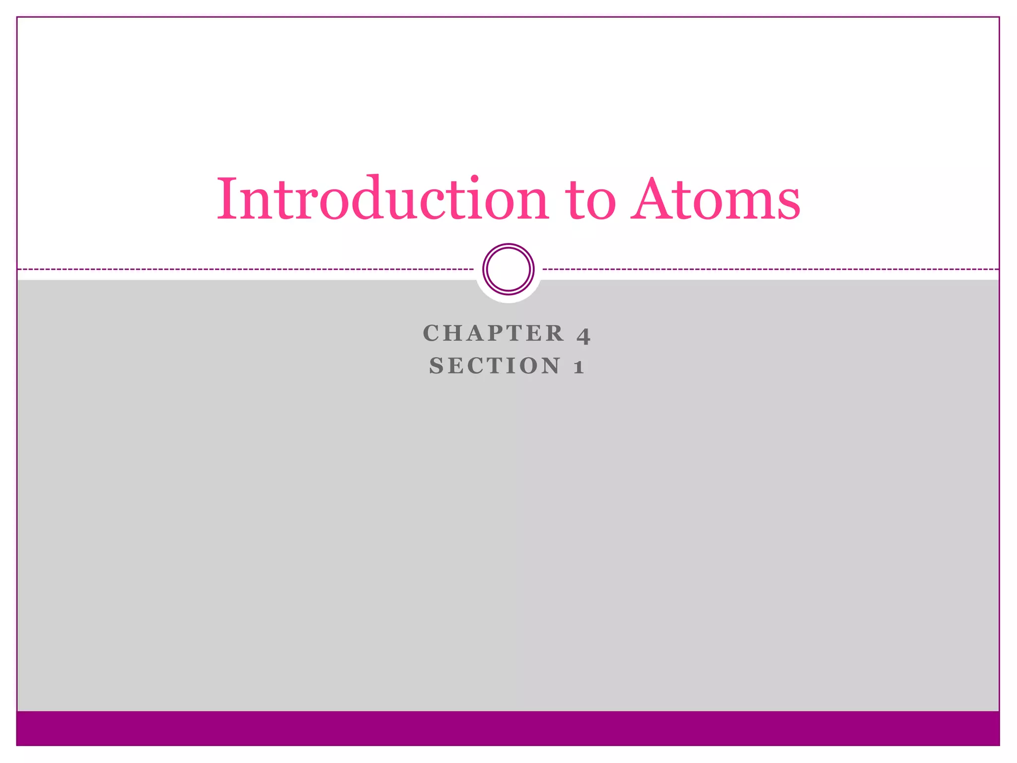 This document provides an overview of the history and development of atomic theory from Dalton's model to the modern electron cloud model. It discusses key scientists and experiments that led to important discoveries, such as Thomson discovering electrons, Rutherford determining the structure of the nucleus, and Bohr proposing electron energy levels. The document also defines important atomic concepts like atomic number, mass number, isotopes, and how elements are distinguished by their number of protons.