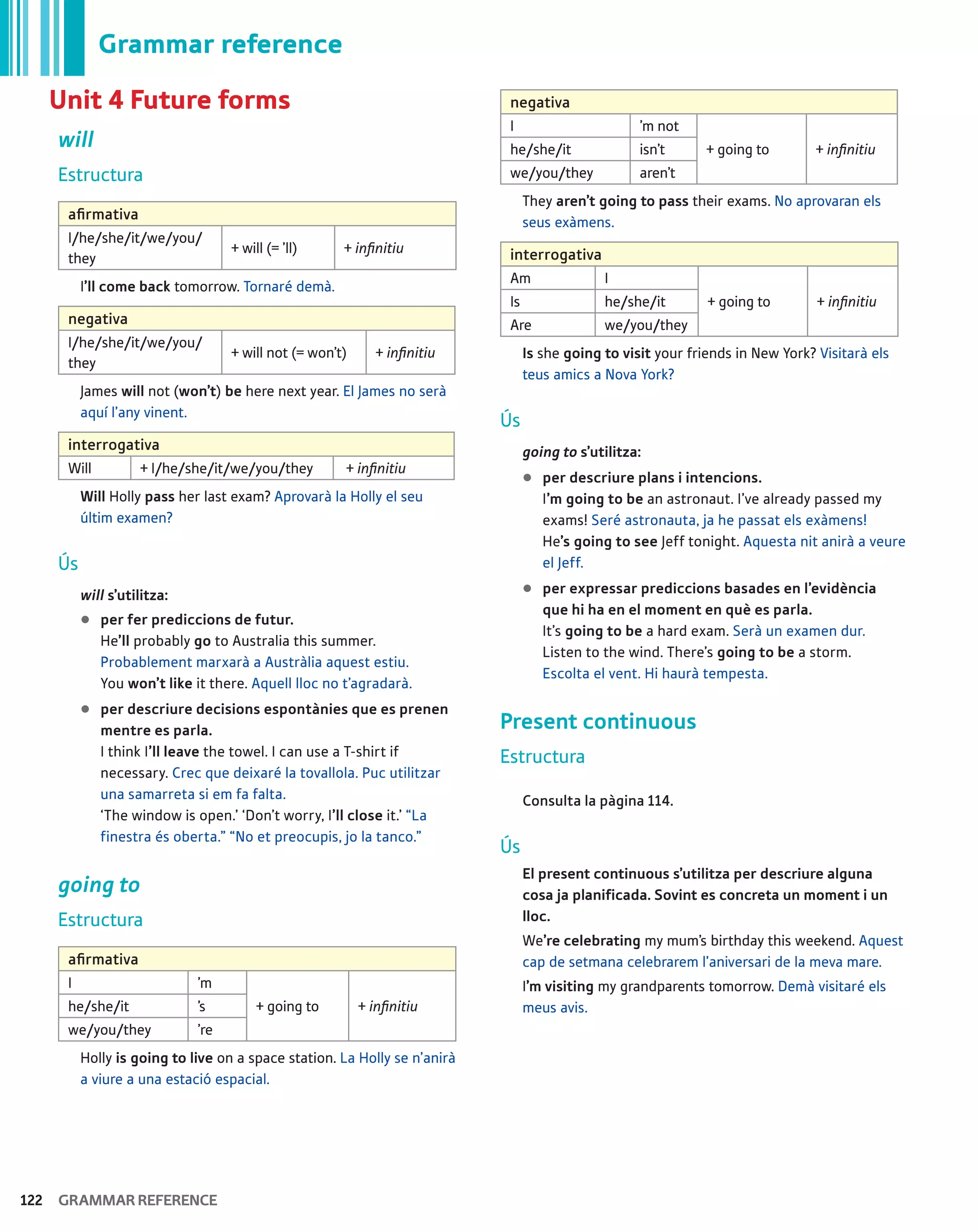 Unit 4 Future forms negativa