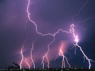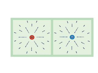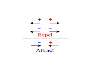 Static electricity is a stationary electric charge built up on the surface of materials. It is caused by electrons being transferred between two objects during friction. There are two types of charges - positive and negative. Atoms contain protons which have a positive charge and electrons which have a negative charge. The laws of electrostatics state that like charges repel and unlike charges attract. Materials that allow charge to pass through are conductors, while insulators do not. When a charged object is brought near an uncharged object, the electric field can induce charges in the uncharged object. Some applications of static electricity include electrostatic precipitators, printers, and photocopiers. Grounding neutralizes charged objects by connecting them to the earth.