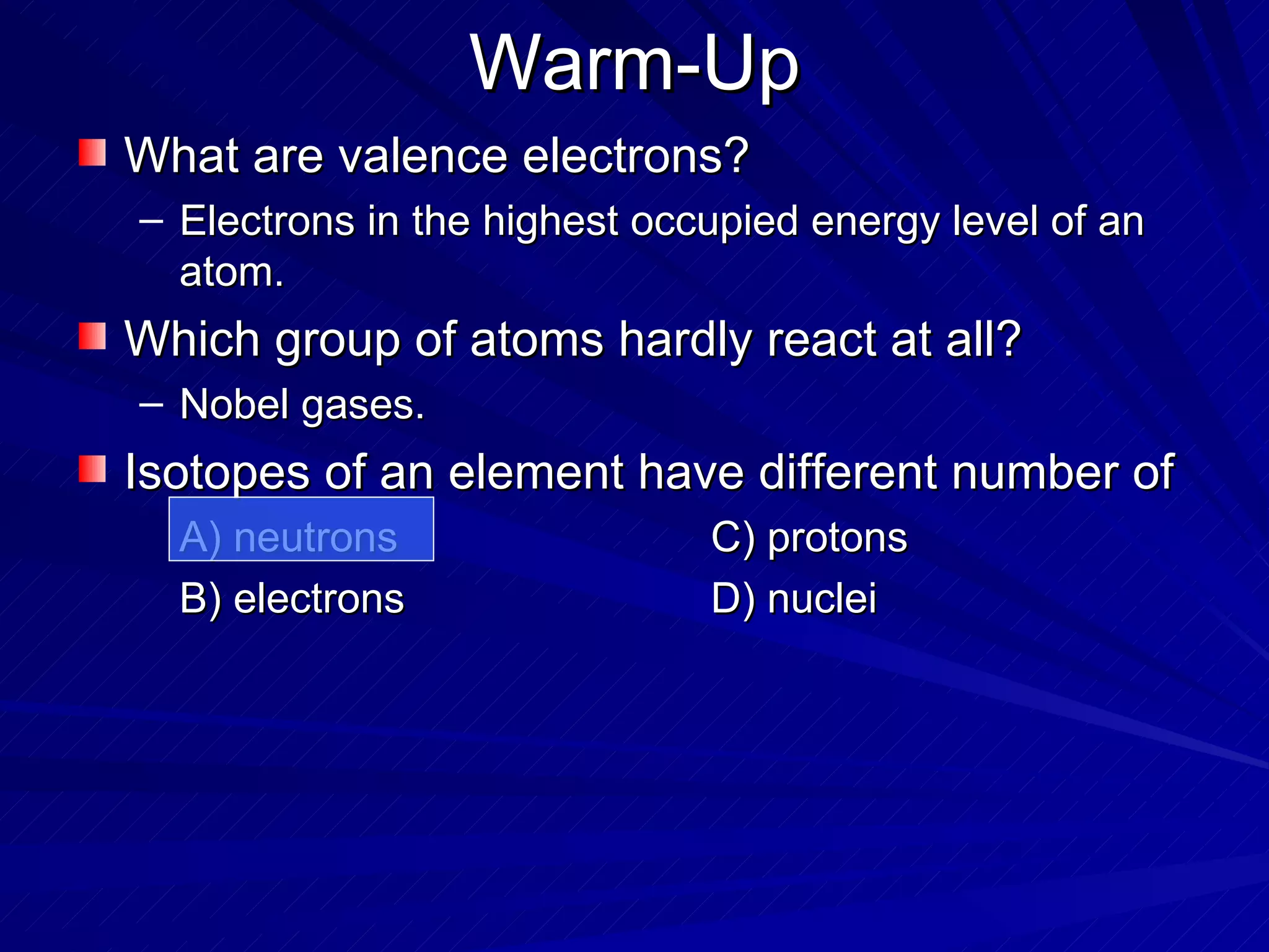 The document summarizes the key differences between ionic and covalent bonding. Ionic bonds form when a metal transfers electrons to a nonmetal, creating oppositely charged ions. Covalent bonds form when nonmetals share electrons to obtain a full outer shell. Ionic compounds have high melting points, are brittle solids, and dissolve well in water, while covalent compounds have lower melting points, are soft and pliable, and are generally insoluble in water.