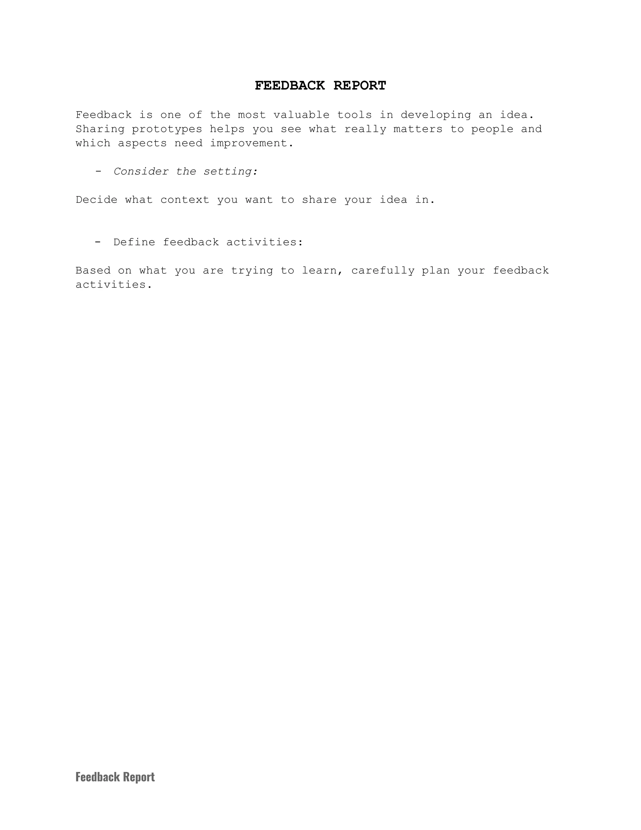 Feedback is one of the most valuable tools in developing an idea. Sharing prototypes helps you see what really matters to people and which aspects need improvement.