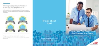 ADP's award-winning global security program focuses on comprehensive protection and expert defense against evolving threats, ensuring clients' security and success. With a culture rooted in integrated business operations protection and constant innovation, ADP facilitates advanced data security, fraud defense, and crisis management strategies. Trusted since 1949, ADP allows companies to concentrate on their core business while safeguarding confidential information.
