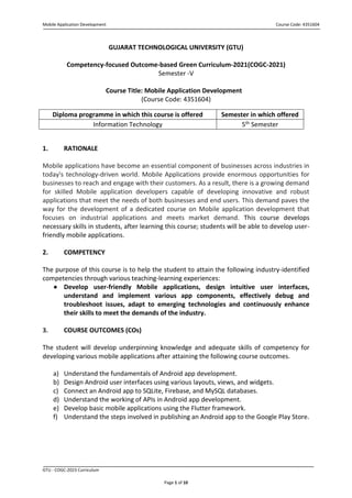 This document outlines a course on mobile application development. It includes: