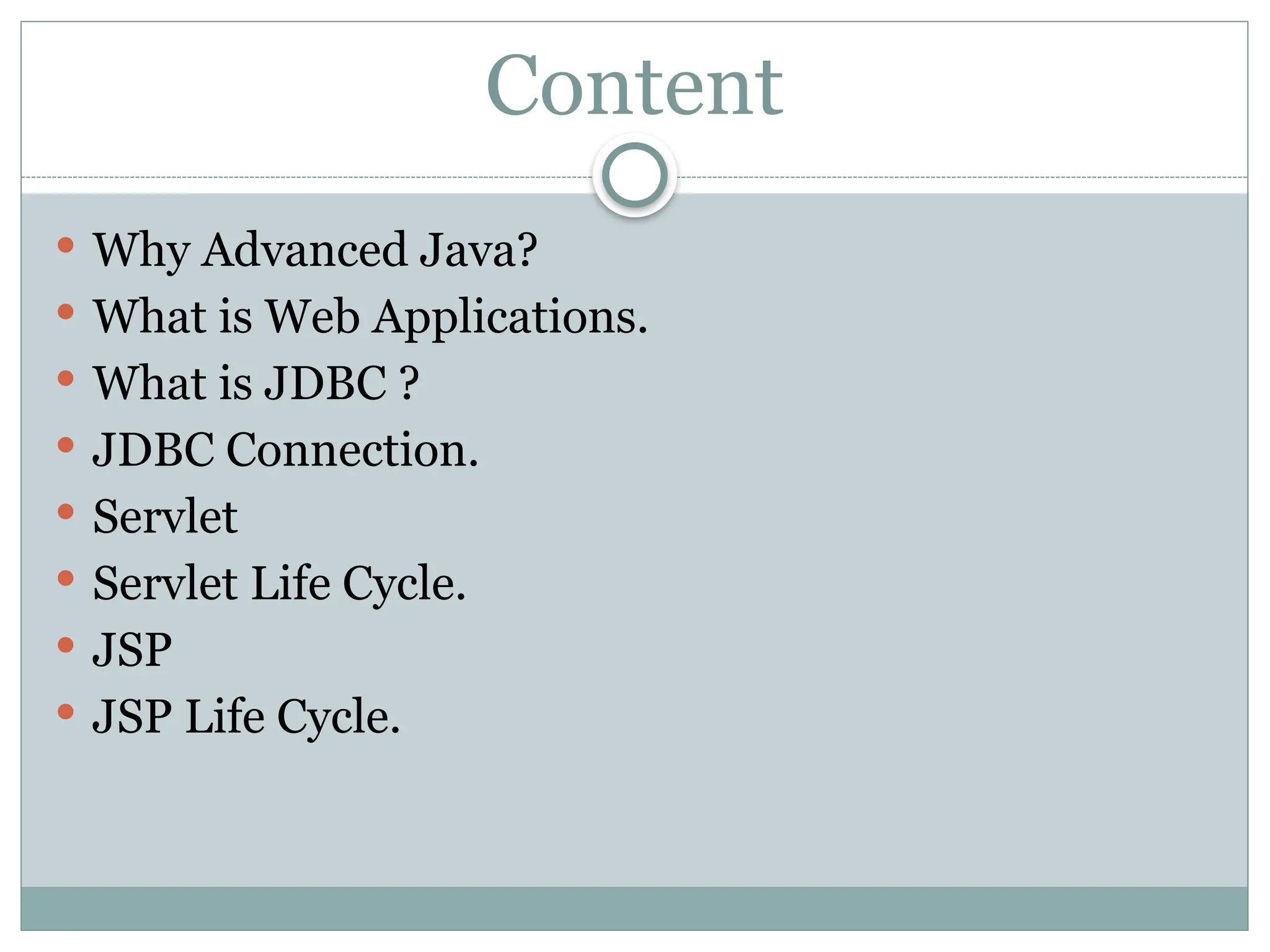The document outlines the key components of Advanced Java technology, focusing on web applications, JDBC, servlets, and JSP. It highlights the distinction between core and advanced Java, emphasizing advanced Java's role in creating enterprise-level applications. Additionally, it describes how JDBC facilitates database connectivity, the function of servlets in web server interaction, and the simplicity of JSP programming compared to servlets.