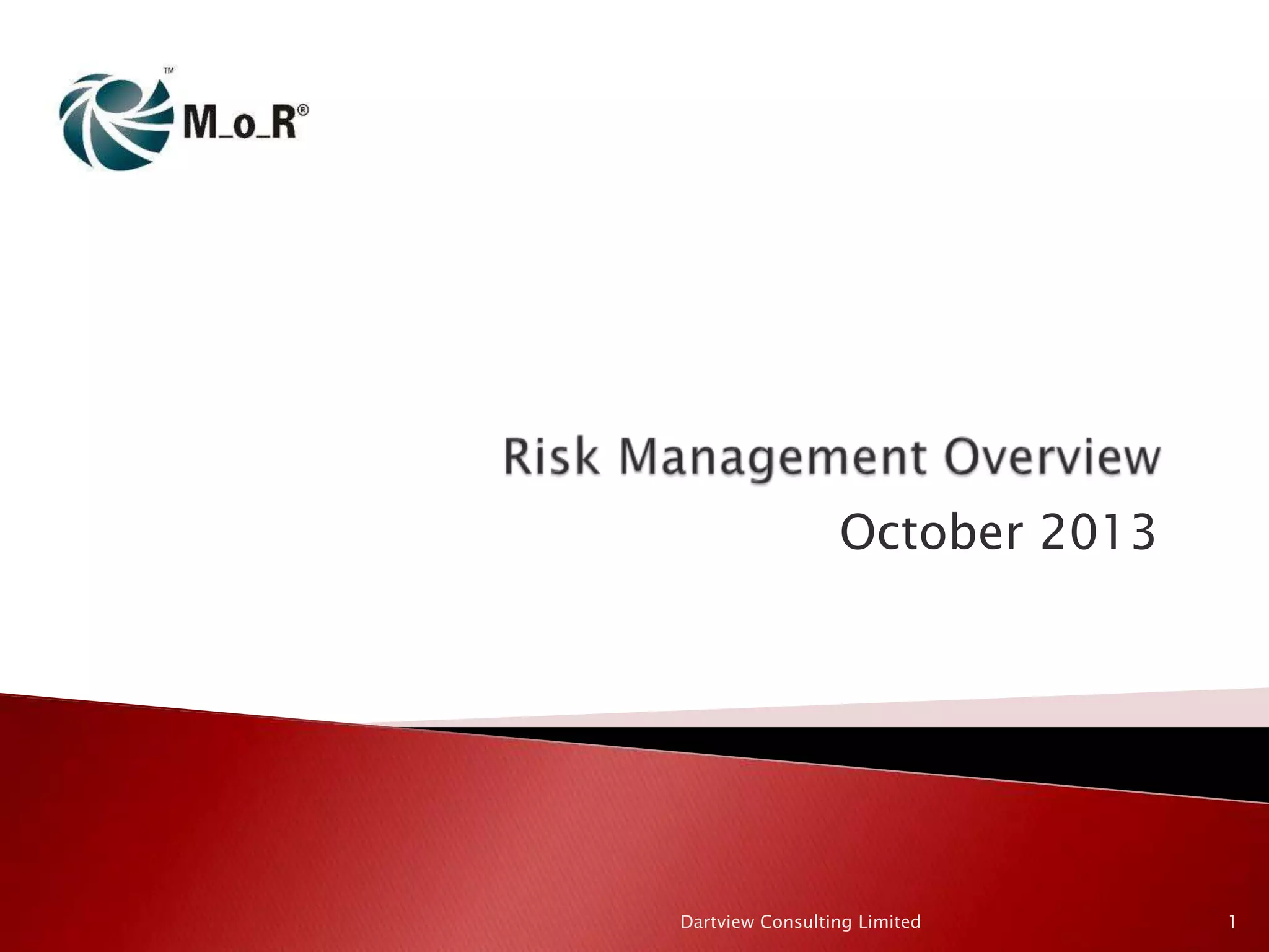 The document provides a comprehensive overview of risk management, defining risk and outlining effective risk management practices, including risk identification, assessment, and control. It emphasizes the importance of a strategic approach across different organizational levels and highlights various risk management documents such as policies, strategies, and reports that support the risk management process. Additionally, it discusses techniques for stakeholder analysis, communication, and embedding risk management into the organizational culture.