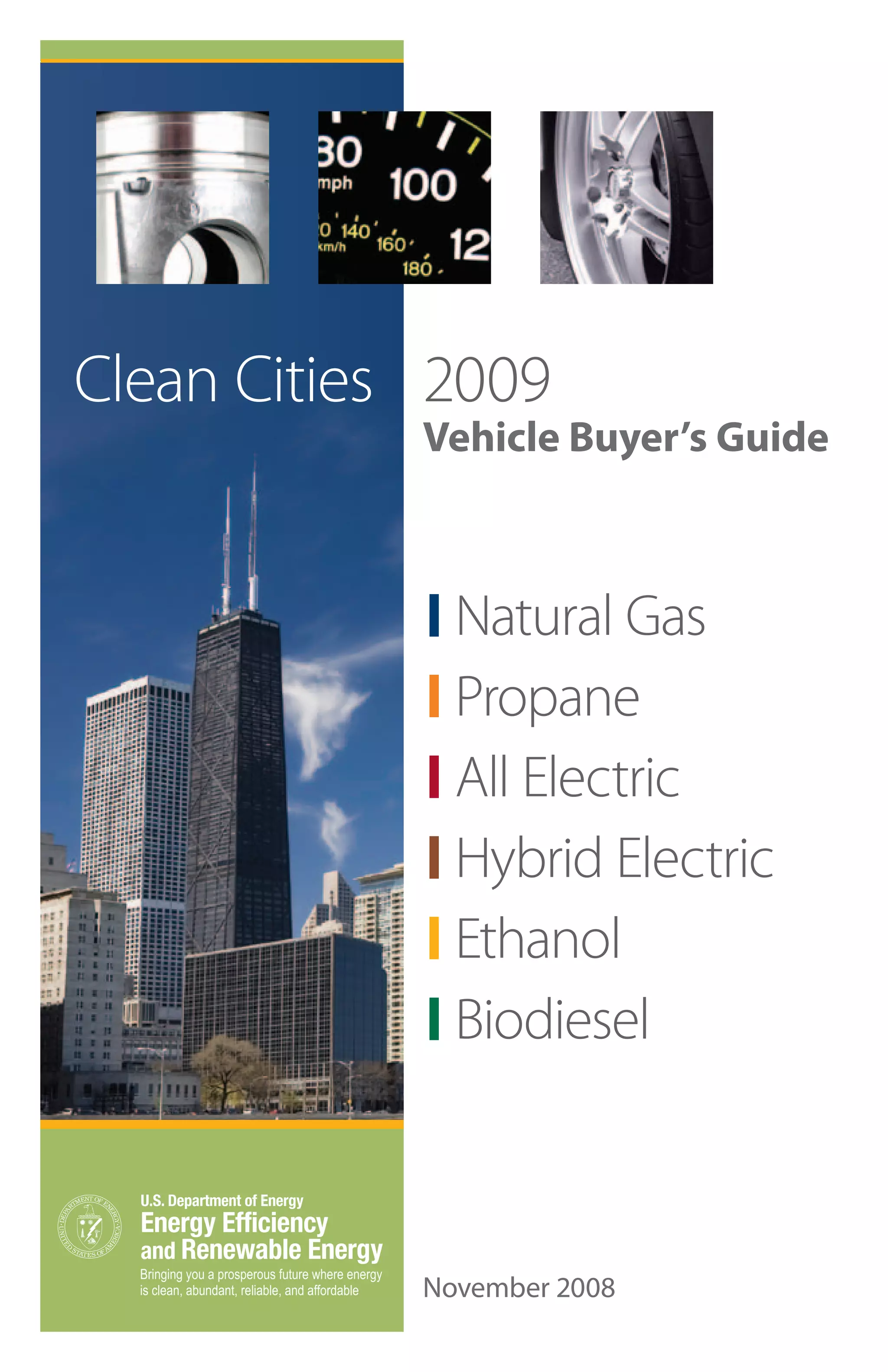 The document provides information on various alternative fuel and advanced vehicle technologies including natural gas, propane, hybrid electric, all electric, ethanol, and biodiesel vehicles. It includes brief descriptions of select vehicle models that run on these fuels, their fuel economies, emissions ratings, prices, and warranties. The goal is to help consumers learn about and choose from efficient vehicle options that can reduce petroleum use and emissions.