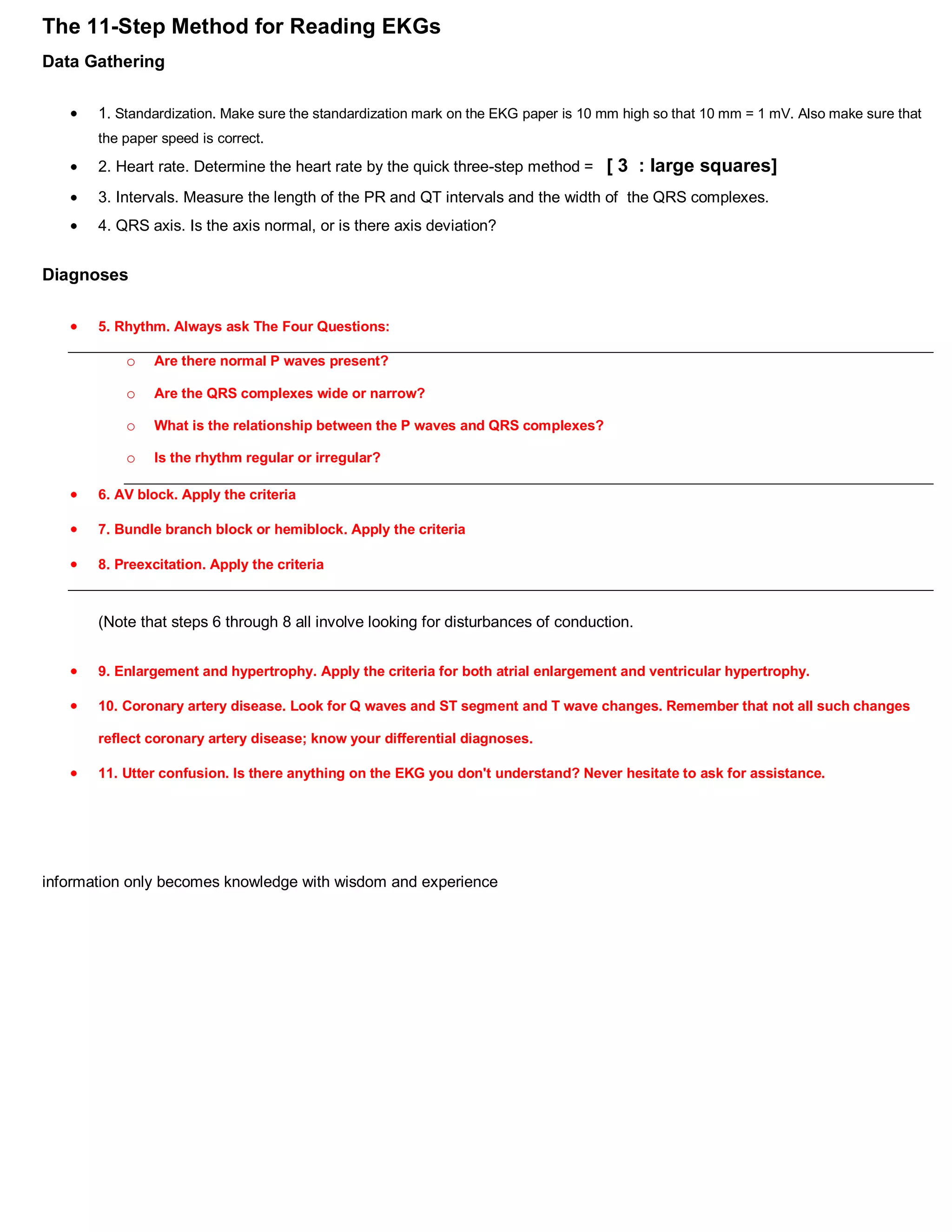The 11-step method provides a systematic approach to reading EKGs: