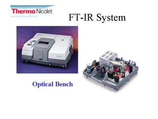 This document discusses using infrared spectroscopy to determine the structure of organic compounds. It begins by explaining electromagnetic radiation and the infrared region. It describes the different types of molecular vibrations that can be observed in an infrared spectrum. The document then explains how to interpret an infrared spectrum, noting the functional group and fingerprint regions. It provides examples of interpreting spectra for specific functional groups such as alkenes, alkynes, alcohols, aldehydes, ketones, carboxylic acids, amines and amides. Key absorption bands that identify each functional group are highlighted.