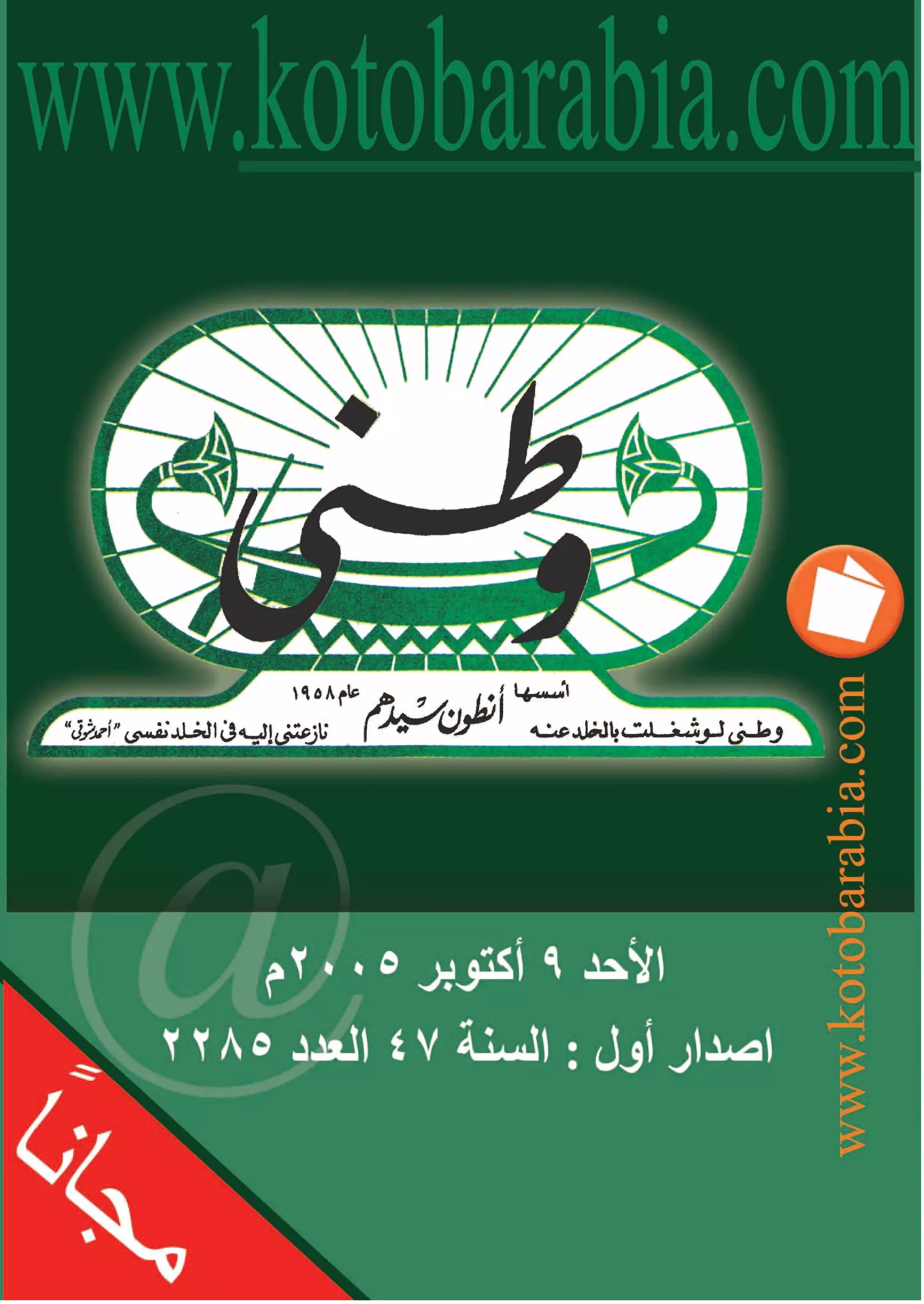 …œU¹“Ë rŽbë WKJO¼ …œUŽ≈Ë WÃUD³Ã« öJA?Ä Y׳¹ ¡«—“uë fK−Ä Ëd?Ł o?ÃU?? ? ? ? ?)« b?? ? ? ? ? ³? ? ? ? ? Ž ‘ ≥∑ ≥π±≥∞¥¥ ≠ ≥π±∑∑∏∞ œbFë q‡‡ ‡ «œ d N*« o‡‡ KÄ b «Ë tOM ‡ ‡ W‡‡ ‡ ‡ H ≤∞ English supplement Sunday 9Oct. 2005-1st.Issue: Yr. 47 - No. 2285 -2nd.Issue:Yr. 5 -No. 251 ≤µ±œb‡‡‡‡‡‡‡‡‡‡Fë µ W‡‡M‡‡‡‡ ë ∫ ÊU‡‡‡‡‡Ł —«b‡‡‡‡‡‡ « ‡‡ ≤≤∏µœb‡‡‡‡‡Fë ¥∑ W‡‡M‡‡‡‡‡‡ ë ∫ ‰Ë√ —«b‡‡‡ « ‡‡ ‡¼±¥≤∂ ÊUCÄ— ∂ ‡‡ ‘±∑≤≤ uð ≤𠇇 Â≤∞∞µ dÐu²Â√ π b‡‡ ‡ ‡ _« WATANI -Tel. 3927201-3936051- Fax. 3935946 Website:www.watani.com.eg E-mail:watani@watani.com.eg ≥π≥µπ¥∂ ∫fÂU?? ‡ ≥π≥∂∞µ± ‡ ≥π≤∑≤∞± ∫Êu??H?OK?ð ‡ …d¼U?I?ë ‡ ËdŁ oÃU??)«b?³? Ž Ÿ—U??ý ≤∑‡‡ Â Æ Â Æ ‘ ‡d?A?MÃ«Ë W?ŽU??³DK?à åvMÞËò W?? ?ÝR??Ä U¼—b??Bð fOL)« Âu `O d ë »U ` ˚ ©±∞∑®≠åUNM uJ *« —uÄ_«ò nKÄ v …¡«dÁ ˚ ©≤®≠øsDMý«Ë v W¹dB*« WMÞ«u*« d9RÄÆÆÆ«–U* W{—UFLKà WN³ł qOJAð d¦?FðËÆÆbž bFÐ tO×ýdÄ sKF¹ vMÞuë »e(« lÄ œU?%ô« Ë√ ŸU?L²?łöà ◊Ëd?ý U?N¹bà ≠ÎU½u?½U???Á …—uE?;«≠5LK ?*« Ê«u???šù« sKF???Ä u¼ U??Ä V? ??ŠËÆvMÞu?ë »e??(« ∫÷U¹— ×uł≠V²Â d9R?Ä bI?Ž WO½ ‰u?Š ÂöŽù« v dz«bë V ?Bë jÝË pÖ ÊuJ¹ Ê√ WD¹dý W?OÝUO?Ý ÈuÁ È√ »eŠ fOz— VzU½ ÊU?ŠdÝ bL×?Ä dÂ–Ë d??O??ž `O??ýd??²Ã« sÄ s¹b??F??³??²?? *« ÊS?? vIKð dÐu??²?Â√ ±≥ fO?L??)« Âu¹ √b?³¹ :rKI Ušd? —bBð¨◊U³?Á_« ÂuL¼ nKÄ WA?ÁUM* sDMý«Ë v ¡UM¦??²??Ý« ÊËœ Èu??Ië Ác¼ qJà Îö??ÄU??ý œ«bŽù oO? M²Ã« ÎU?OÃUŠ Èd−¹ t?½√ b uë ÷u????????????? ??Ð r?N??à Õu?????????????L?????????????? ?????????????Ä W?O½U*d?³Ã« UÐU? ?²½öà `O?ýd?²Ã« U?³KÞ WKJA*UÐ ÎU? «d?²?Ž« „U?M¼ Ê√ U¼«œR?Ä iF?³Ã« sÄ ÃU?−?²?Š« Ê√ ÎU?????C?¹√˨b?????Gë »e?????Š p?Ö v U?0 WKÄUJë W?D¹d?)« V ?Š …b?Šu?Ä W?LzU?Á WÃU????Š v Ë å5?KI???²???? ???Äò U?ÐU??? ????²½ô« Ø ± Ø ≥± v? ≤∞∞µ W?M? ?à µ≥ r?Á— —«d?? ? ? ? Á ææ pK?ð ÕdDð Ê√ Vł«u?ë sJèWM?Þ«u*« ‚u???I??Š l?Ä W??O?D³???Ië ‚U?Hðô« - U?Ä —UÞ≈ v n?ÃU?×?²Ã« ÊuJ¹ iFÐ Ê√ ÎU??H??O?C??Ä W??OÐU?? ?²½ô« d?z«ËbKà vMÞu?ë »e?(« Âu??I??O??Ý pÖ W??HÃU?? ??Ä Vžd¹ h ?ý q ÂbI?²¹ ·uÝ˨WK³?I*« ◊U?? ? ?³? ? ?Á_« W?? ? ?HzU?D?à hšd?¹ò∫vK?Ž hM?¹Ë ≤∞∞µ œËœdë T&ËÆÆÆÃ—U???)« v fOÃË d???B??Ä qš«œ WK?JA*« WM−Kë vÃ≈ VKDÐ UÐU ²½ô« ÷uš v ‰ö?Šù«Ë U??L?O?Äd?²Ã« ‰U??L?Ž√ ¡«d?łSÐ 5O?KO?$ù« ΫbÐ√ ÕdD?ð ô WKJA*« s?JèpÖ v ‰«b??ł ô r?F½∫W??F¹d??Ý v q¦???L??²ð W??Âd??²???A??Ä …bMł√ sÄ t???OKŽ oO{ XÁuë Ê√ Èd?ð WN³?'« v ÈuIë rN½√ —U??³?²?Ž« vKŽ —u??Hë vKŽ rNK?B?HÐ UÐU????? ?????²½ô« w?KŽ W????? d????A?*« U?????OK?Fë vMÐ WOŠUMÐ WMzUJë WOKO$ù« W OMJÃUÐ b¹b−²Ã«Ë ¡«uÝ UNŠdDÐ …—œU³*« WŽU−ý pK1 bŠ√ ô˨dBÄ qš«œ Êu½U??Á —Ëb??? Ë ∆—«uDë Êu½U???Á ¡U??GÃ≈ ÆWLzUIë Ác¼ qOJA²Ã q³???Á pÃcÐ b??O???Hð «—«d??Á≈ vKŽ «u???F??ÁË uÐ√ œuL×?Ä —UA² *« WÝU?zdÐ WO½U*d³Ã« `{«ËË åÆÆÆ¨◊u?O?Ý√ WE U?×?ĨW?O u?Ië e?Âd?Ĩ…d?Á ôËÆÆÆvÐe??(« Ë√ Èc?O??HM²?ë Ë√ vF¹d?A??²Ã« Èu??²?? *« vKŽ W??³ÃUD*«Ë W??O??ÝU??O?? ë »«e??Šúà b¹b??ł —u?²??Âbë lL?−??²Ã« »e?Š fO?z— ‰U?ÁË ÆvÐU ²½ô« lL−LKà rNÄbIð Æ‰bFë d¹“Ë qOKë ô b¹b???&Ë rO???Ädð ‰U???L??Ž√ h? ¹ t½√ —«d???Ië ‚uDM?Ä sÄ WKJA??LKà dJM²Ã« —«d?L??²?Ý« vKŽ qF?H?ë œ— ÊuJ¹ Ê√ sJ1 W?OzU?C??Ië WDK ë ‰ö?I??²?Ý« …—Ëd?CÐ ‡Ã ’U??š `¹d?Bð v ≠b??O?F? ?ë XF? — «—ËUA?Ä W{—U?F*« »«e?Š√ Èd&Ë »e???????????????(« s??K?F??¹ Ê√ d?E??²?M??*« s?ÄË rÁ— —«d??Ië b?FÐ U??N½Q?AÐ È—u??N?L?ł —«d??Á —Ëb?Bà vM?F?Ä °°°ÃdHë —UE²½«Ë ”QOKà Âö ²Ýô« u¼ q 5Ð W??Âd?²??A*« VÃUD?*« sÄ U¼d?O??žË oO? M²Ã« ‰u??Š b?Á iF?³Ã« Ê≈≠åvMÞËò r?z«u?????????Á ‰U?????????L?J?²??????????Ýô W?????????F?????????Ý«Ë W???OzU??N?Më W???LzU??I?ë ≠b??ž b???FÐ≠vM?Þuë Ʊπππ WM à ¥µ≥ uKš ¡«“≈ iF³Ã« p?KL²¹ ◊U³?ŠùUРΫ—uFý „UM¼ Ê√ U?L ◊U?I½ ’u?B Ð U?Ä√¨W?O?ÝUO? ë Èu?Ië v?Ã≈ »«e????????Š_« 5?Ð ÎU?????????O?ÃU????????Š d?z«b?ë œu???łuÐ U???F???Áuð jÝ˨U???N???O??×???ýd???Ä lL?????:« d????³????Ž s¹—U????²????<« ¡U????L?????ÝUÐ Ø ± Ø ≥± v? ≤∞∞µ W?M? ?à µ∑ r?Á— —«d?? ? ? ? Á ææ «c¼ v …—Uý≈ È√ sÄ „—U?³Ä fOzdKà vÐU ?²½ô« ZÄU½d³Ã« «b??? ???²???Ý« v WK¦???L???²*«Ë ·ö???²???šù« W?ŽU?L?ł ¡UŽb?²?Ý« -Ë åW?N?³?'«òÂuN?H?Ä ÁuN¹ œuNý WŽbÐ dz«Ëbë sÄ b¹b?Fë v W?Ýdý W? ? UMÄ ◊U?? ? ?³? ? ?Á_« W?? ? ?HzU?D?à hšd?¹ò∫vK?Ž hM?¹Ë ≤∞∞µ ÷d?Fð È√ sÄ 5L?Oë nKŠ »UDš uKš pÖ öð˨œb?Bë WOÐU? ²½ô« öL?(« v WOM¹œ «—U?Fý W?—U??A?L?Kà U¼d?O??žË 5LK ?*« Ê«u?šù« W????O????ŠU?½ sÄ »«e????Š_« w×?????ýd????Ä 5Ð …dz«œ ≤≤≤ w? `O???ýd???²?Kà vÐU??? ????²½ô« szU?Jë¨.d?? Ä ¡«—c?? Fë …b?? O? ? ?ë d¹bÐ f?–uŁ—_« rٍ5¹dB*« 5?Ð WMÞ«u*« ‚uIŠ v Ÿb?Bë »√dà dýU?³Ä vKŽ —U??O??²??šô« l?I¹ ·u??ÝË W??OÐU?? ??²½« n¹u?Ý vMÐ WE? U?×?Ĩd? U½ e?Âd?ĨÂU?L?(« W¹d?IÐ vMÞuë »e?×?Kà ÈuM ë d9R*« ÂU?²?š »U?Dš ÎU?C¹√ ¡U?ł Âb??????Ž …—Ëd??????{ Õu?????²??