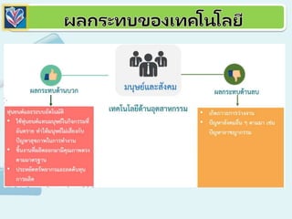 เผยแพร่แผนการจัดการเรียนรู้1 เรื่อง การเปลี่ยนแปลงและผลกระทบของเทคโนโลยี