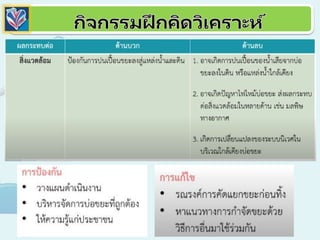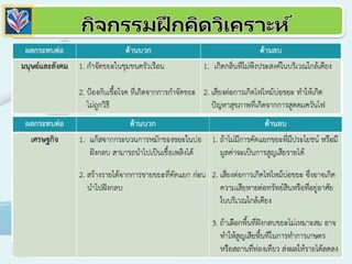 คิดอย่างมีวิจารณญาณ 4) การสื่อสาร 5) การทางานร่วมกับผู้อื่น