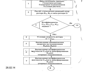 Документ содержит лекцию о расчетах динамических характеристик вынужденных колебаний ротора, включая блок-схемы и примеры расчетов. Представлены экспериментальные и расчетные амплитудно-частотные характеристики (ачх) для различных типов роторных систем. Также обсуждается влияние гироскопических моментов на прогиб роторных конструкций.