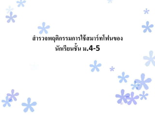 สำรวจพฤติกรรมการใช้สมาร์ทโฟนของนักเรียนชั้น ม.4-5 PPTX