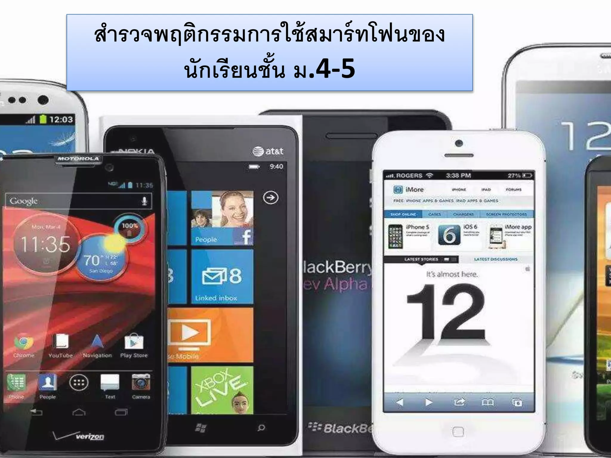 สำรวจพฤติกรรมการใช้สมาร์ทโฟนของนักเรียนชั้น ม.4-5 (บทที่1) PPTX