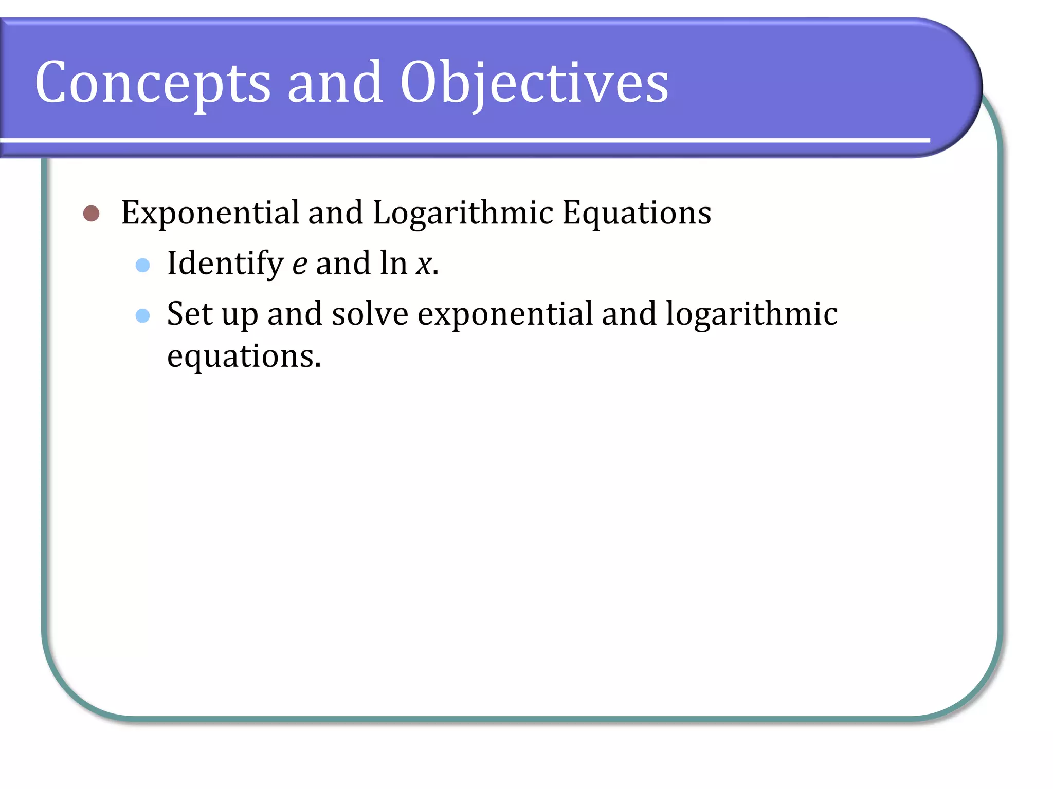 The document discusses exponential and logarithmic equations. It defines exponential growth using the formula A = P(1 + r/n)^nt where A is the final amount, P is the principal amount, r is the annual interest rate, t is time in years, and n is the number of times interest is compounded per year. As n increases without limit, the value of A approaches a fixed number called e, which is approximately 2.71828. Natural logarithms use e as the base and are written as ln(x). The document provides examples of solving exponential and logarithmic equations by changing between exponential and logarithmic form, isolating the variable, and applying logarithmic properties. It concludes with assigning practice problems from
