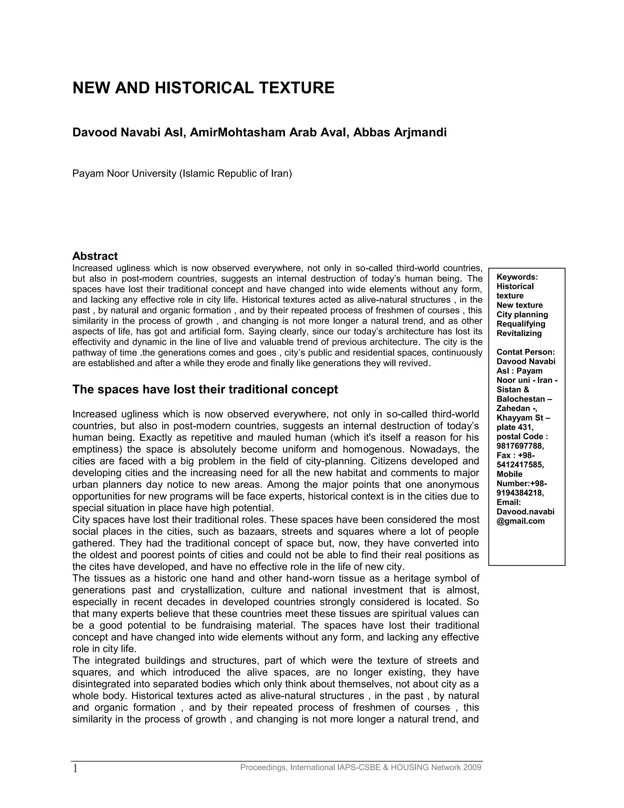 City spaces have lost their traditional roles and concepts according to the document. Spaces that were once very social places for people to gather, like bazaars, streets, and squares, have now been converted into the oldest and poorest points in cities and no longer serve their social purpose. Historical textures that once gave cities life and structure in a natural way have also lost their effectiveness and dynamism. The integrated buildings and social spaces that composed historical textures have disintegrated. While efforts are being made to preserve valuable historical textures, modern architecture has moved away from the living trends of the past.