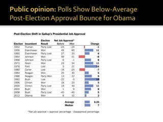1) Presidents try to use going public strategies to promote their policies directly to Americans, but are often unsuccessful as public opinion moves away from presidential policies over time.