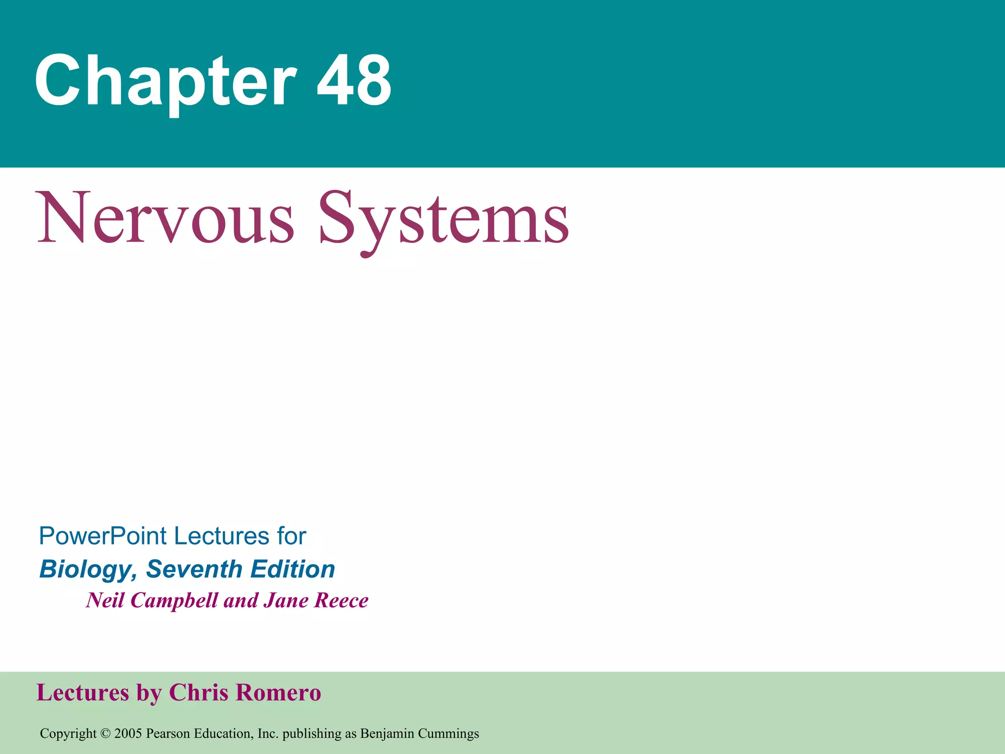 The document summarizes key concepts about nervous systems. It describes how neurons are organized into circuits in different animal groups, from nerve nets to central and peripheral nervous systems. It explains the three stages of information processing - sensory input, integration in the central nervous system, and motor output. It also describes how action potentials are generated and conducted along axons through the opening and closing of voltage-gated ion channels.