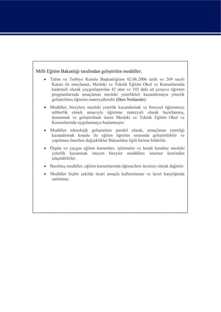 • Modüller, bireylere mesleki yeterlik kazandırmak ve bireysel öğrenmeye