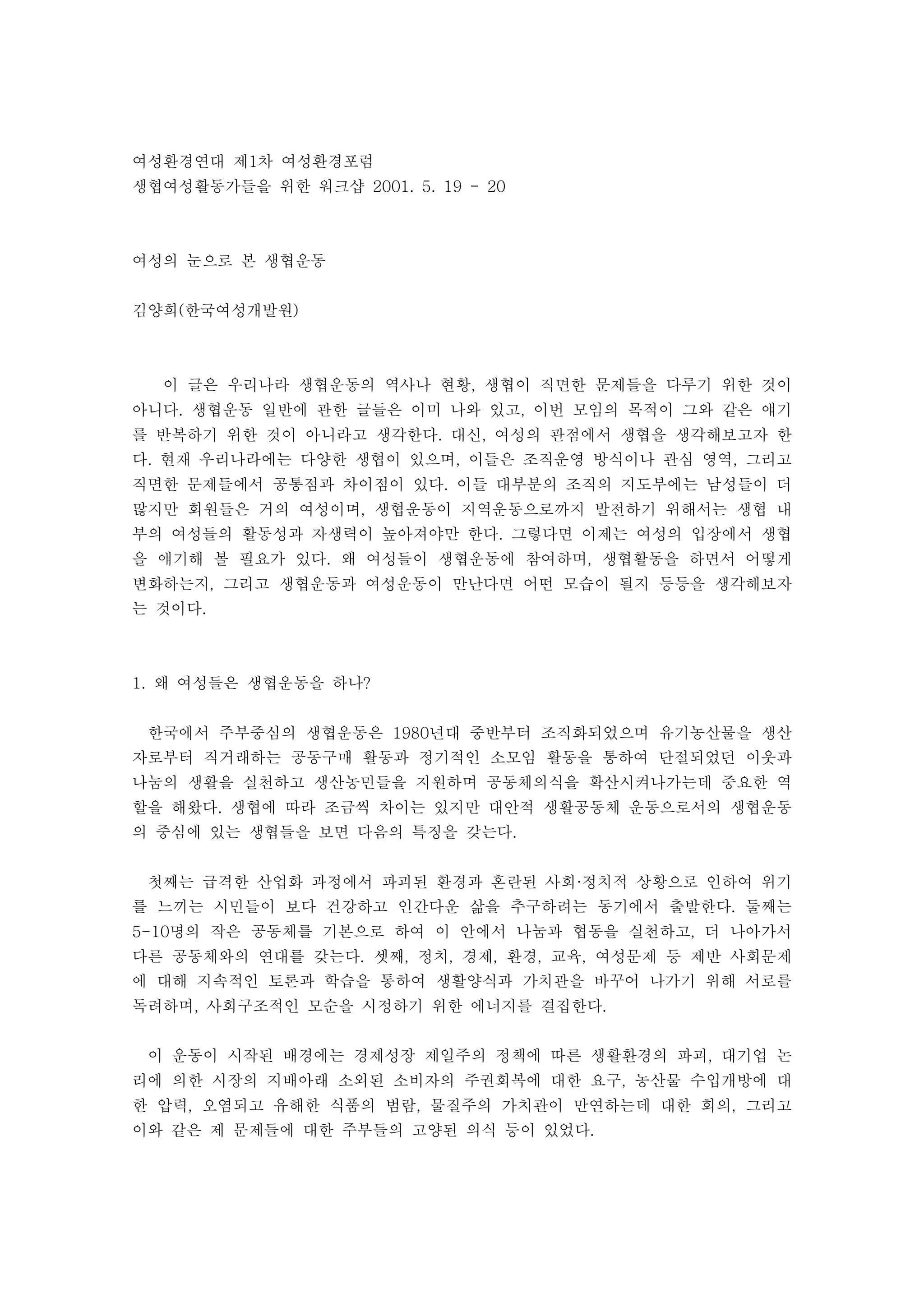 를 반복하기 위한 것이 아니라고 생각한다 대신 여성의 관점에서 생협을 생각해보고자 한. ,