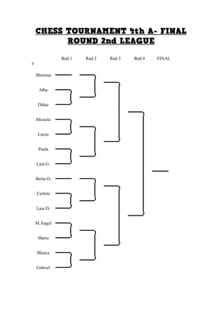 2 Rnd 3 Rnd 4 FINAL Mariona Alba Dídac Micaela Lucas Paula Laia G. Berta O. Carlota Laia D. M.Àngel Marta Blanca Gabriel