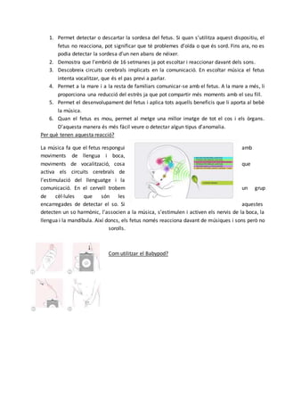 4. Permet a la mare i a la resta de familiars comunicar-se amb el fetus. A la mare a més, li