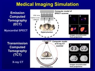 The document discusses the development of a population of 4D computational phantoms for CT imaging research and dosimetry, highlighting the advantages of using known anatomical models for evaluation and optimization of imaging devices. It details the creation of these phantoms based on patient CT data, incorporating variations in anatomy and physiological parameters for diverse age groups. The ultimate goal is to enhance imaging techniques and radiation dose estimates for both pediatric and adult patients.