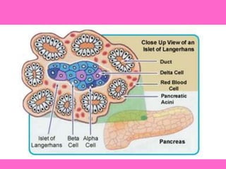 The document discusses the gastrointestinal system and its organs including the mouth, stomach, pancreas, small intestine, and liver. It then describes the liver's functions of producing proteins and bile, storing vitamins and minerals, converting and utilizing fats and carbohydrates, and removing waste. The document notes that carbohydrates provide 60% of the body's energy, with proteins and fats each contributing around 10-12% and 30%, respectively. It outlines the journey of glucose from food to different body parts and its utilization and storage. Key steps in glucose utilization are its entry into cells, phosphorylation, and energy release.