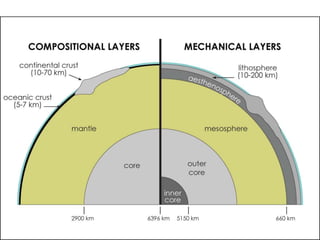 The document discusses the concepts of hypocenter and epicenter in relation to earthquakes, detailing how seismic waves propagate from these points. It explains the Earth's internal structure, including various layers such as the crust, mantle, and core, as well as the methods used to study these layers. Additionally, it covers plate tectonics, including the dynamics of subduction, the formation of geological features, and the relationship between tectonic activity and seismic hazards.
