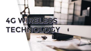 The document discusses the history and progression of wireless technology from 1G to 4G. It describes some of the key features and drawbacks of each generation. 4G technology is defined as providing high speed data rates, stable internet access anywhere globally using an IP-based system. Challenges include higher battery usage, implementation difficulties, and costs for carriers. The conclusion states that 4G can be summarized as "MAGIC" for enabling mobile multimedia, access anytime and anywhere, global support, integrated services, and care for users.