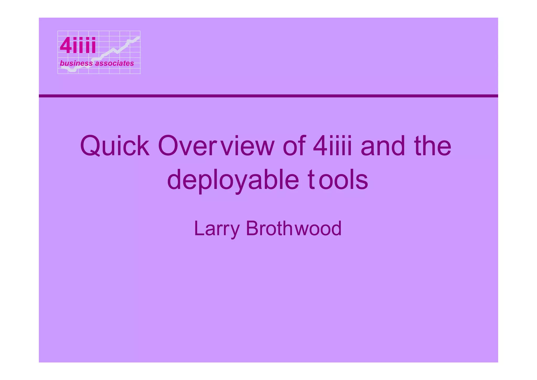 This document provides an overview of 4iiii and the tools they offer for businesses. It discusses how 4iiii helps businesses define goals and measure key performance indicators to analyze processes and improve profitability through their DMAIC methodology. The document includes an example information process flow chart and simple business process map to illustrate how 4iiii captures and relates different sources of data to produce meaningful management information for decision making.