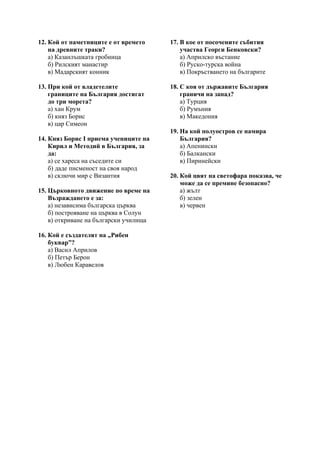 ТЕСТ ПО ЧОВЕКЪТ И ОБЩЕСТВОТО ЗА IV КЛАС