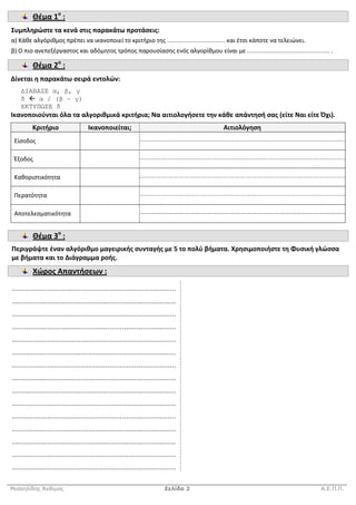 2.1 Τι είναι αλγόριθμος + 2.3 Περιγραφή και αναπαράσταση Γτ Λυκείου ΑΣΚΗΣΕΩΝ