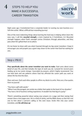 1) Pray specifically about the desired career change and journal your prayers to see how God affirms or closes doors.