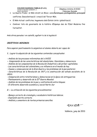 Objetius mínims 4t ESO